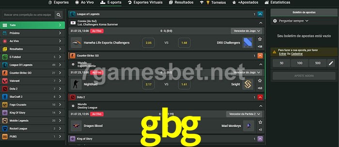 O gbg oferece uma grande seleção de opções de apostas em e-sports com probabilidades competitivas